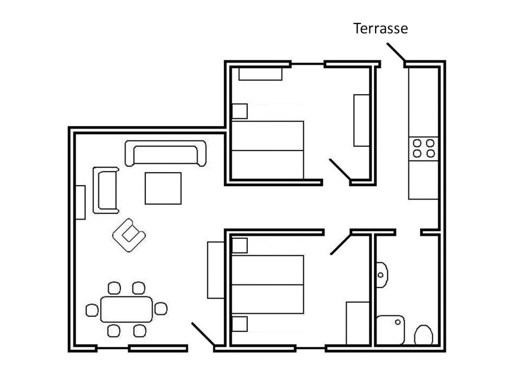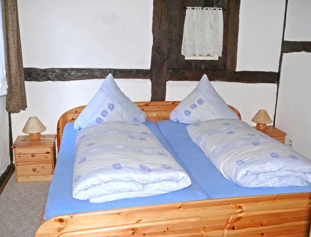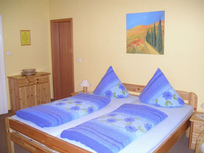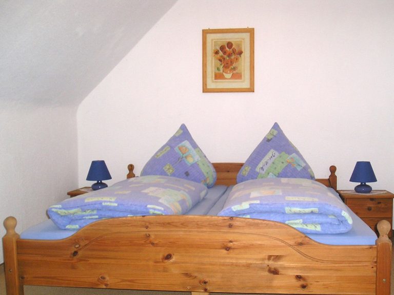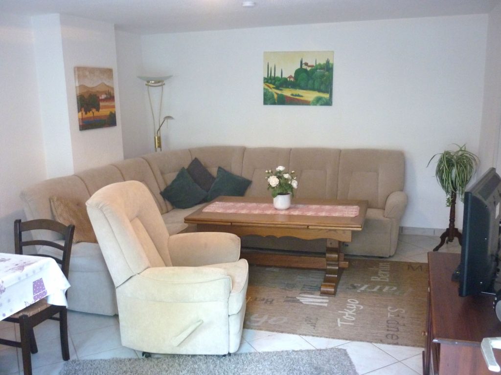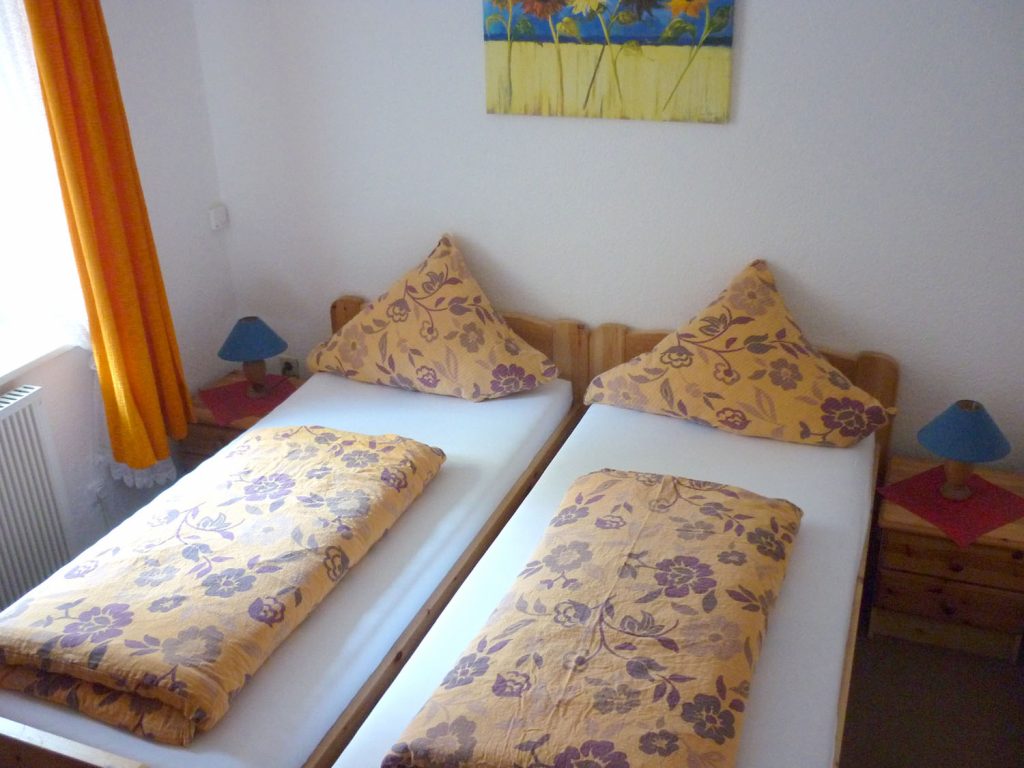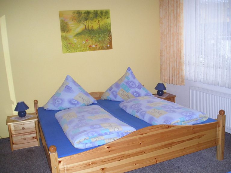 Unsere Ferienwohnung im Haupthaus ist mit 70 m² die Größte und verfügt über 2 Schlafräume, Wohnzimmer, Küche, Dusche/WC, Fernseher, sowie gratis W-LAN.
