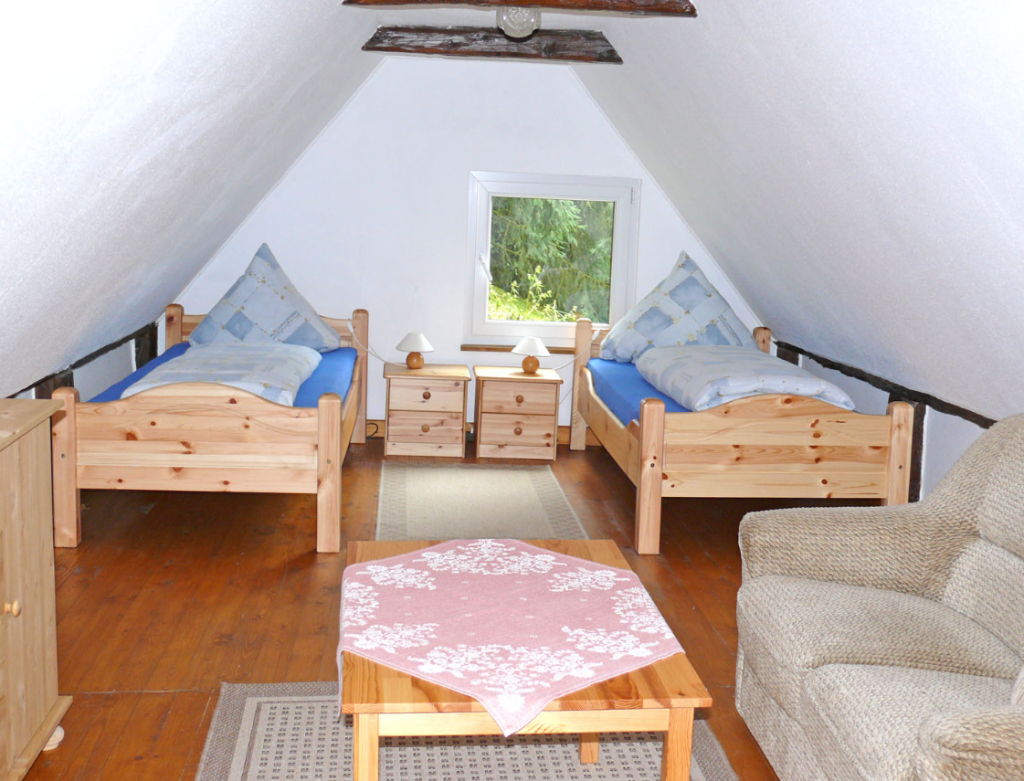 Außerdem befindet sich ein dritter Schlafraum im Obergeschoss, welcher über einen separaten Eingang verfügt.