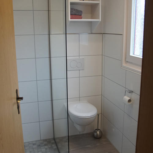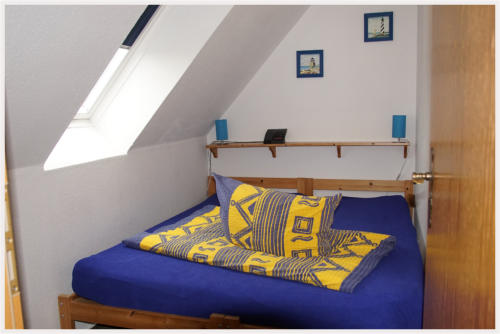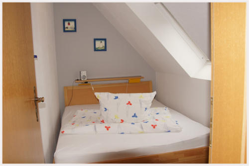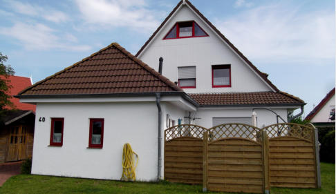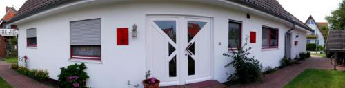 Es ist eine grosszügig geschnittene Ferienwohnung 45 m² für bis zu 4 Personen im 1. OG. Sie beinhaltet zwei Schlafräume, einem kuscheligen Wohnbereichmit Sat-TV, Radip/CD, reichlich Gläser für diverse Getränke und eine unfangreiche Spielesammlung für jung und alt.Angrenzend befindet sich eine voll ausgestattete Küchenzeile, mit E-Herd + Backofen, Spülmaschine, Mikrowelle, usw..Alle Kochhilfsgeräte sind ebenfalls vorhanden, inklusiv ausreichend Geschirr.Eine gemütliche Essecke für 4 Personen hat im Küchenbereich auchihren Platz.