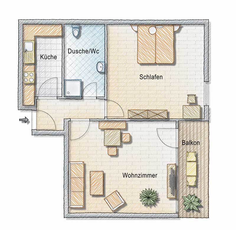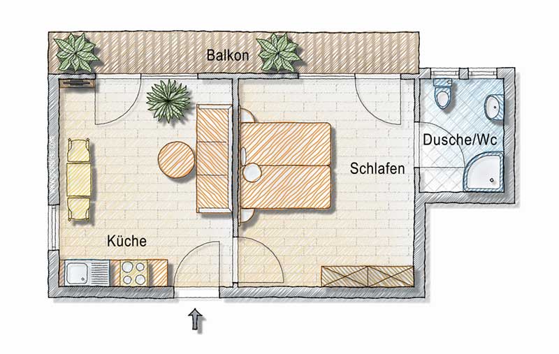 für 2 – 4 Personen, Wohnfläche 60 m²