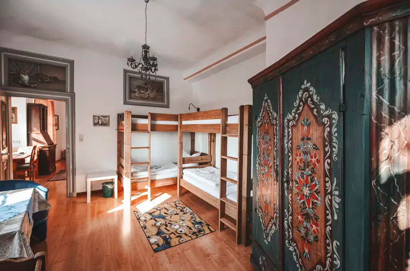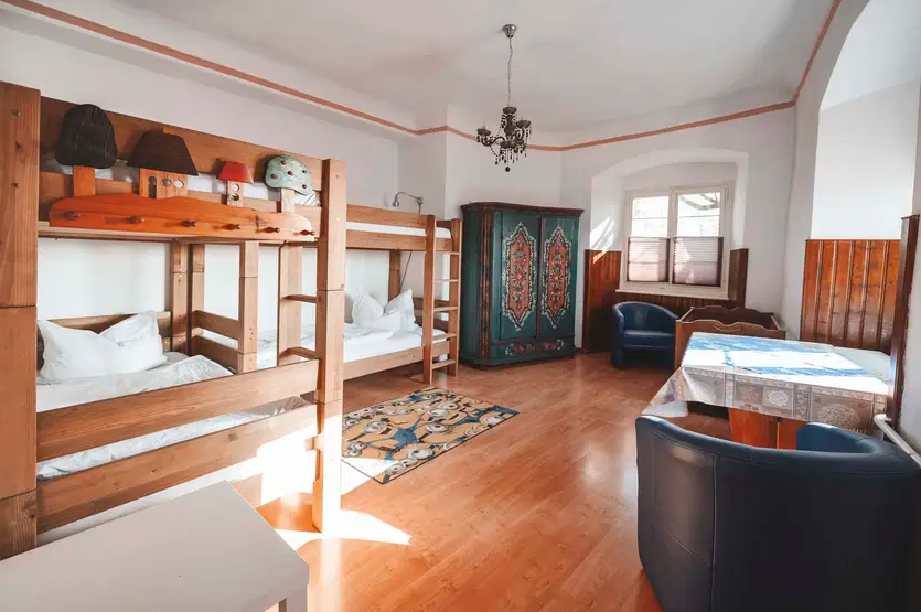 In diesem großen Einraumfamilienzimmer eingerichtet im klassischen Jugendstil befindet sich ein Doppelbett und ein Stockbett sowie ein Bad mit Dusche und WC. Das Zimmer bietet Platz für 2-4 Personen. Die romantische Anlage mit dem Burginnenhof, der uralten Linde Gundula, dem Turmstüble, der begehbaren Schildmauer, dem Lagerfeuerplatz mit großer Grillhütte auf dem Burgwall und die gepflegten Außenanlagen bieten Ihnen vielfältige Möglichkeiten für Ihre Erholung.