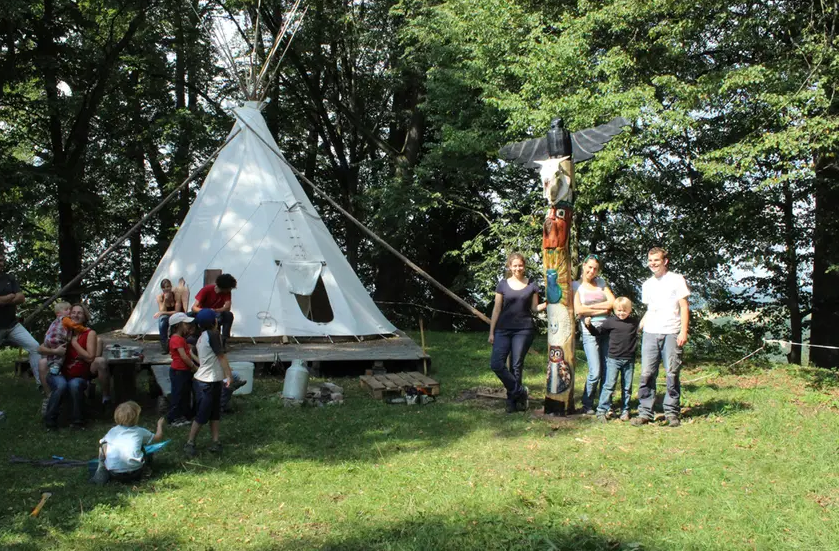 Ab Anfang Mai steht unser geräumiges Tipi auf dem Burgwall! Als kultureller Kontrast steht Ihnen das Ambiente der Tannenburg zur Verfügung. Das geräumige Indianerzelt steht einzeln auf dem Burgwall und bietet mit ca. 24 qm Platz für bis zu 6 Erwachsene. Reizt Sie ein Natur Urlaub in romantischer Lage mit Panoramablick ins Bühlertal? Ich mag an unserem Standort dass er einzigartig auf einem Bergvorsprung Ausblick bietet nach allen Seiten. Sie müssen es erleben um zu verstehen. Mitten in der Natur dicht bei und auf einer frühmittelalterlichen Verteidigungsanlage zu nächtigen. Der Waldkauz hat sein Nest in der Nähe, auch andere Tiere kommen Sie besuchen und doch sind Menschen in der Nähe, zu einem Gespräch bereit…. Die romantische Anlage mit dem Burginnenhof, der uralten Linde Gundula, dem Turmstüble, der begehbaren Schildmauer, dem Lagerfeuerplatz mit großer Grillhütte auf dem Burgwall und die gepflegten Außenanlagen bieten Ihnen vielfältige Möglichkeiten für Ihre Erholung.